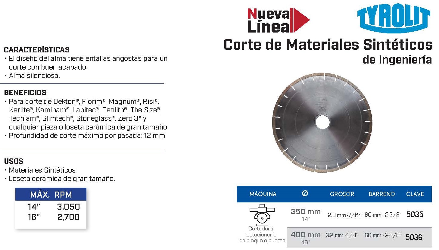 Disco de diamante / Corte de materiales sintéticos de Ingeniería - Austromex Clave 5035/5036