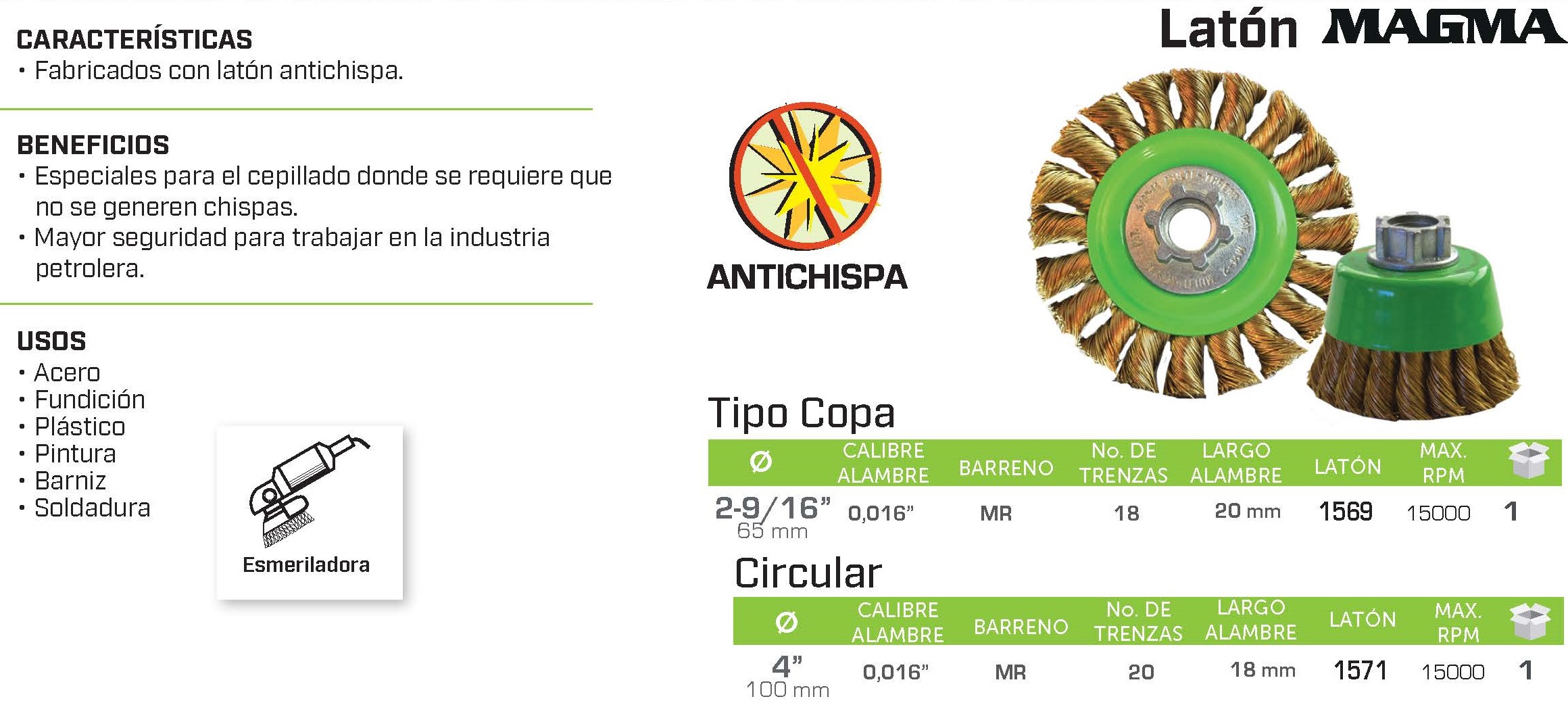 Latón antichispa / TIPO COPA Clave 1569 / CIRCULAR Clave 1571 - Austromex