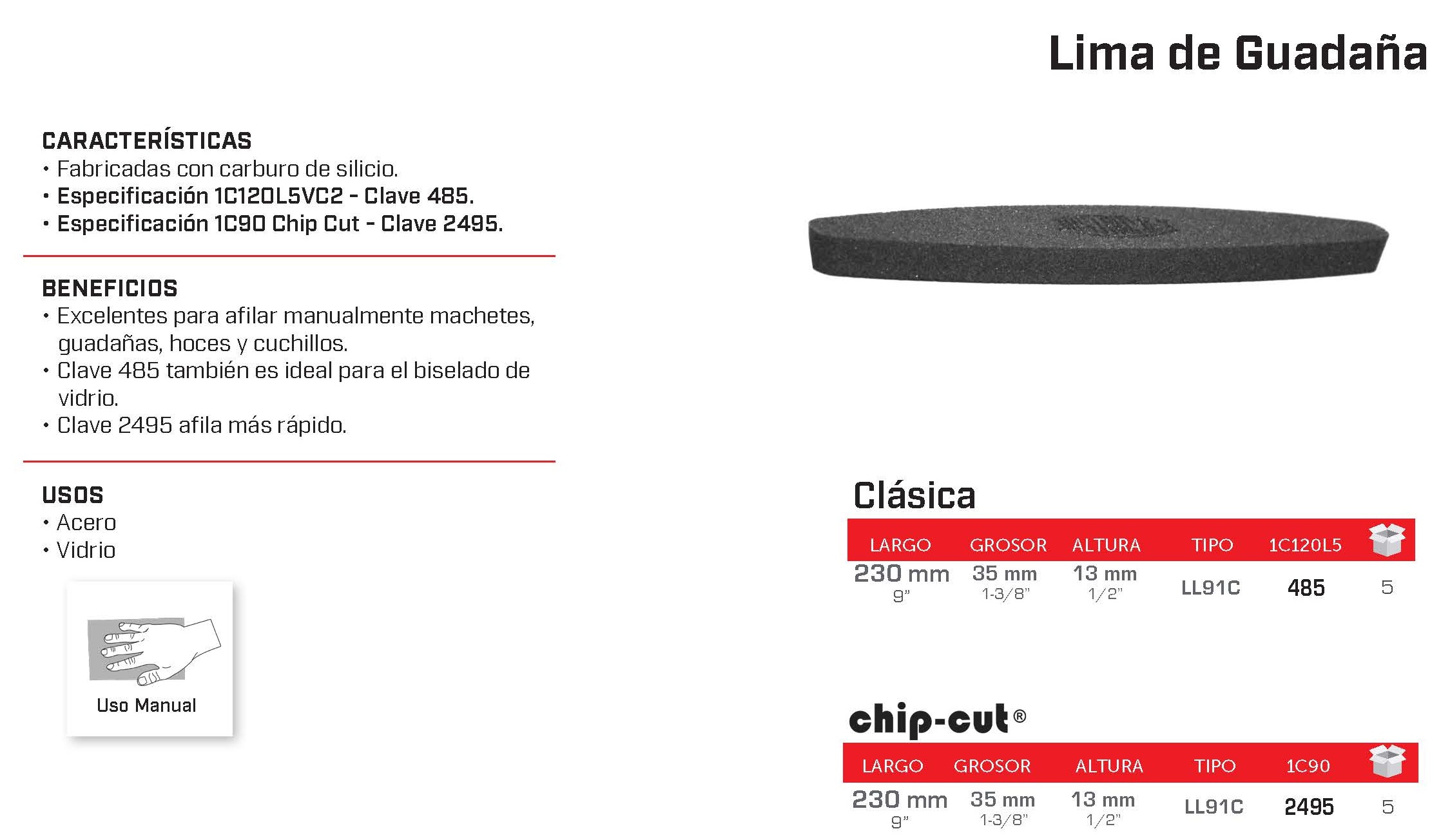 Lima de guadaña Clásica Clave 485 y chip-cut Clave 2495 - Austromex