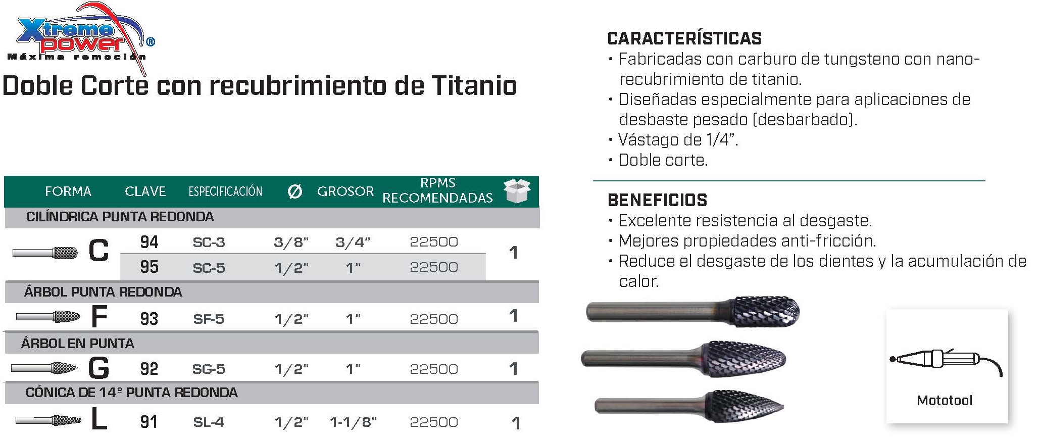 Limas rotativas / Doble corte con recubrimiento de Titanio - Austromex Clave 94/95/93/92/91