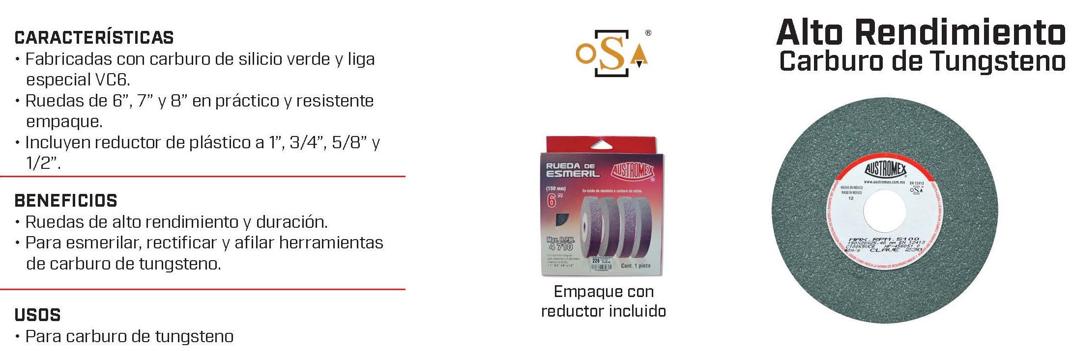 Rueda de esmeril / Alto rendimiento / Carburo de Tungsteno - Austromex
